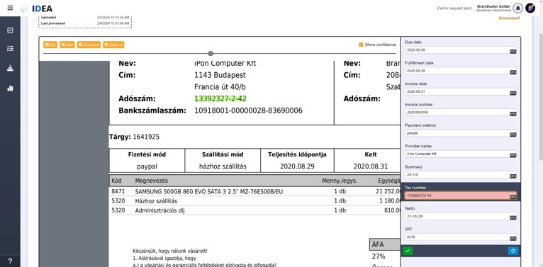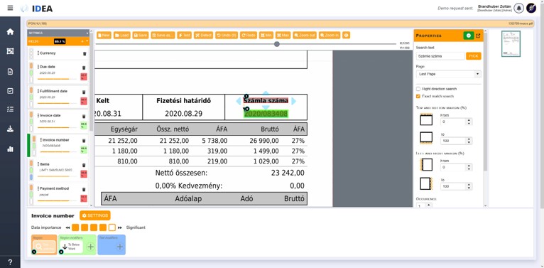 Ha egy dokumentumtípusra már létezik felismerési mintázatunk, a rendszer azt felismeri a beérkező dokumentumok között, és alkalmazza rájuk a feldolgozási szabályokat. A szabályok mentén kinyeri az információt, amelyet számítógépes feldolgozásra kész JSON vagy XML formátumba konvertál, és így ad át a társrendszerei részére.